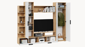 Кромка: ПВХ 0,4мм Штанга: Выдвижная Петли: Без доводчиков (можно заменить на петли с доводчиком накладные/вкладные) Ручка: Металлическая, торцевая Тип сборки: Не универсальный Ниша под ТВ: 1100х272х931мм
