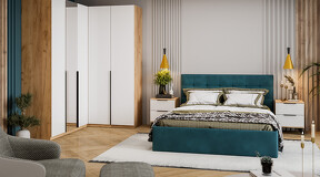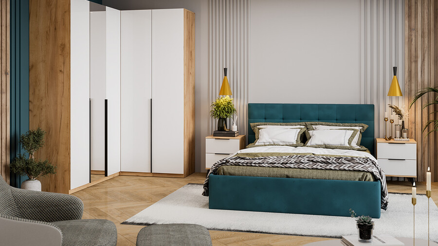 Спальный гарнитур «Джоли» №7 Черный матовый, Дуб Крафт золотой, Белый матовый