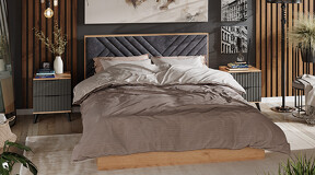 Спальный гарнитур «Хилтон» №5 Черный матовый, Дуб Крафт золотой, Графит матовый