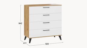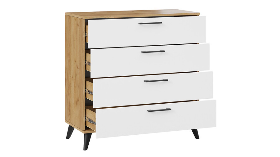 Комод «Нео» с опорами Дуб Крафт золотой, Белый, Черный матовый