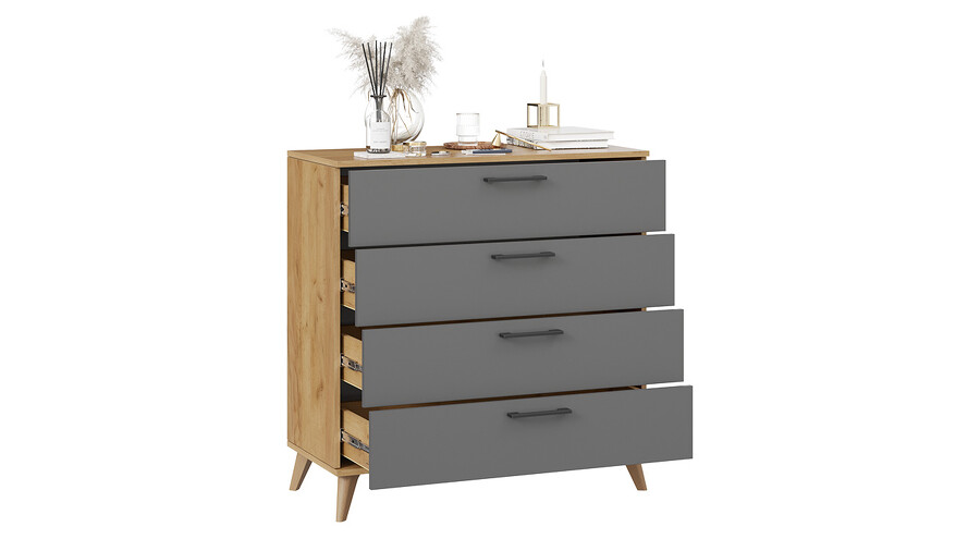 Комод «Нео» с опорами Дуб Крафт золотой, Серый графит, Бук матовый