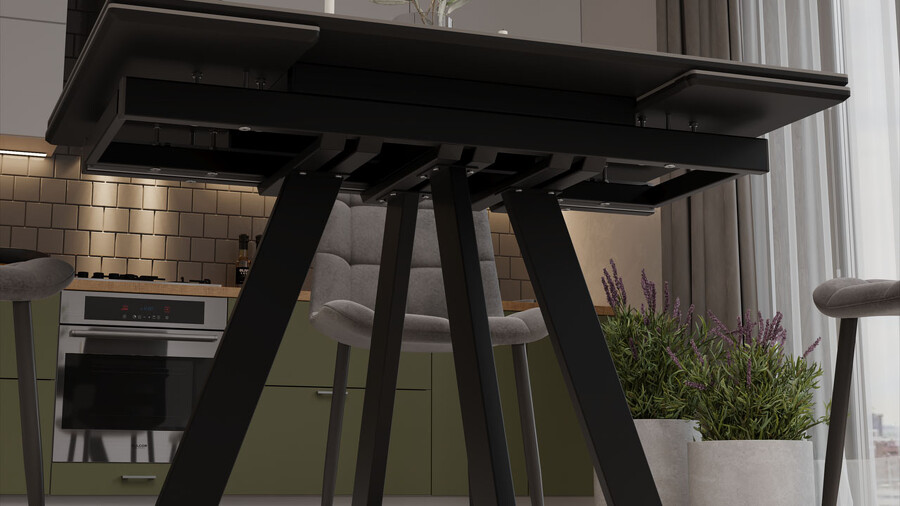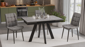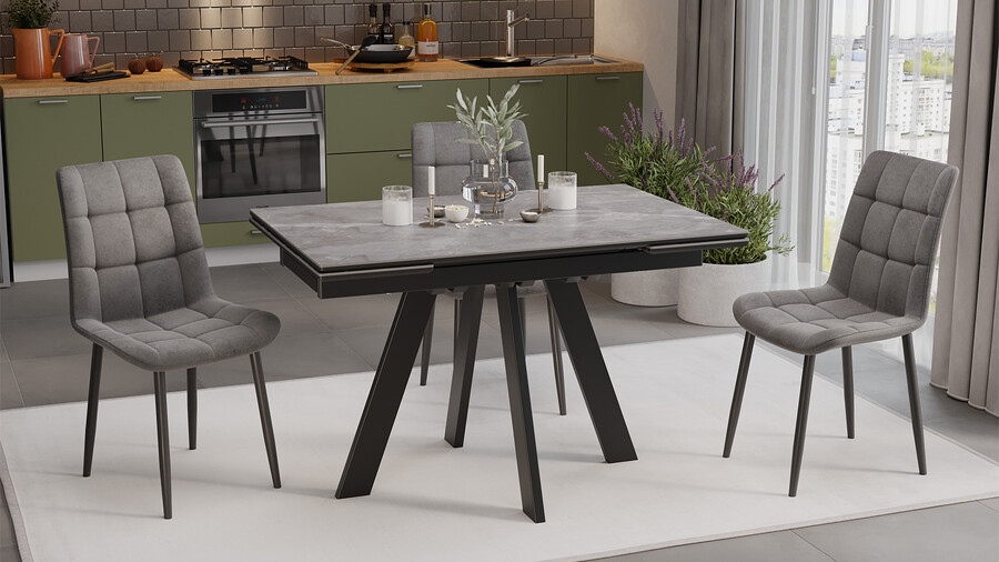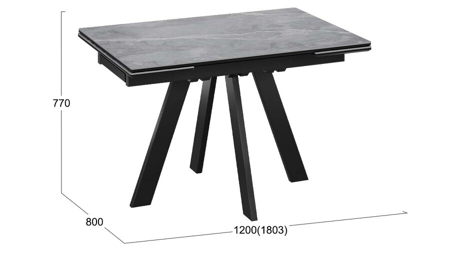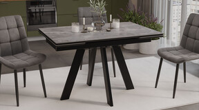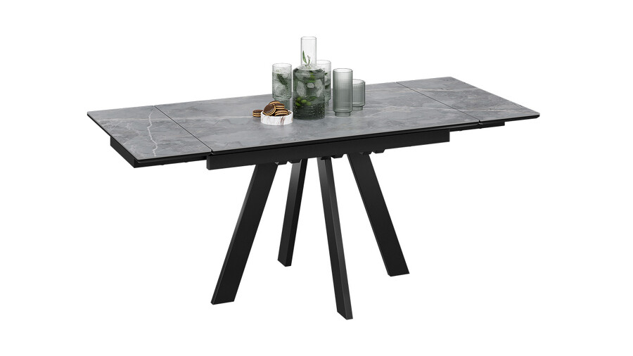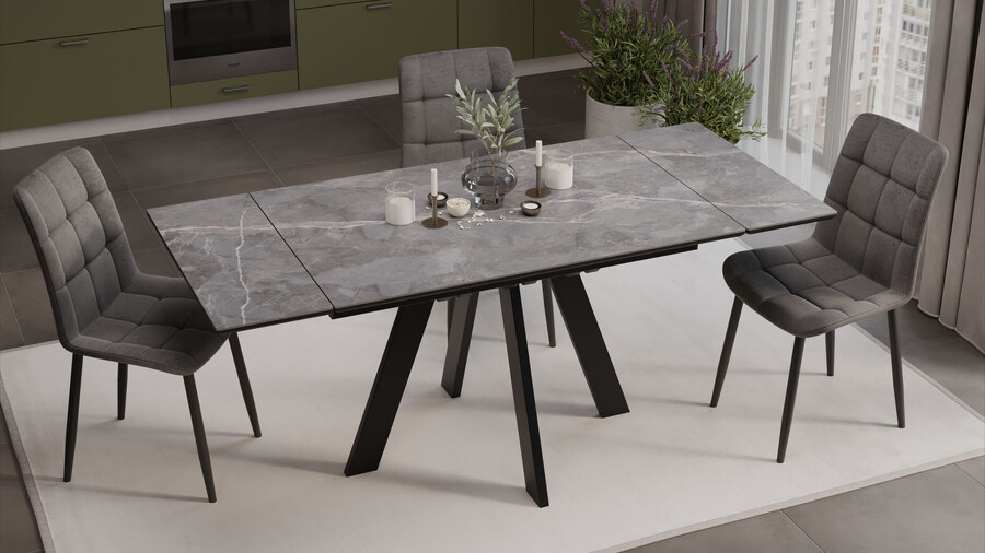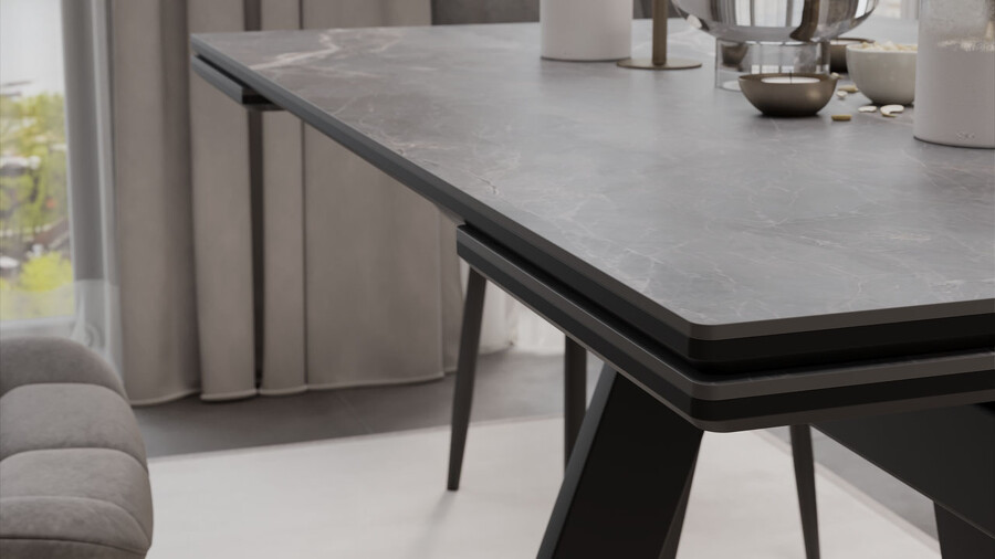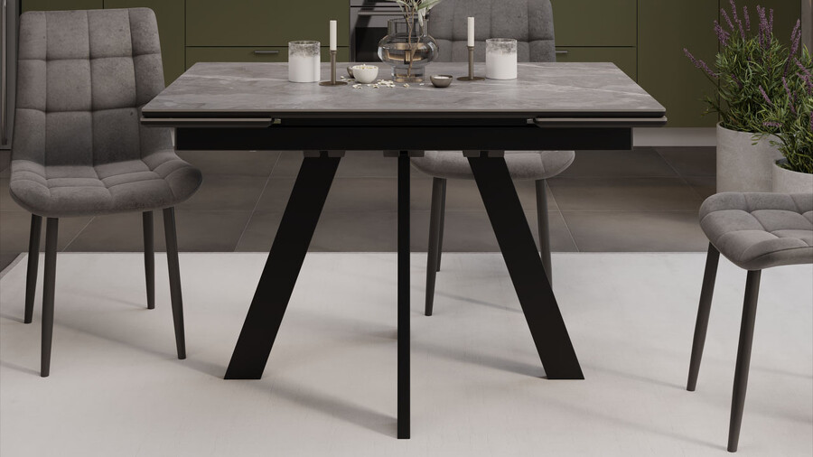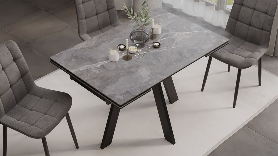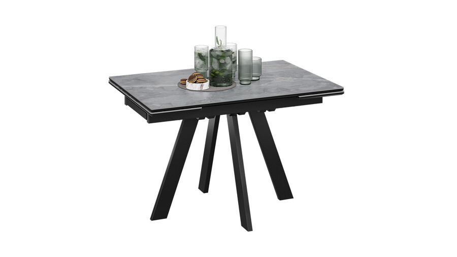 Стол обеденный «Джаггер» Тип 1 Черный муар, Керамика матовая серый мрамор