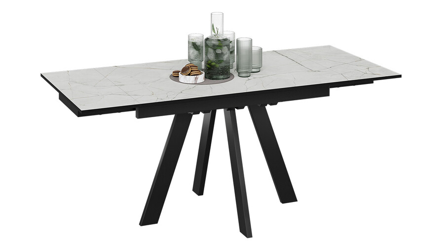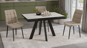 Лаконичный дизайн стола «Джаггер Тип 3» сочетает эстетику и высокую эргономичность, обеспечивая комфортное размещение большого количества людей. Четкие геометрические линии создают гармоничный образ, который легко впишется в интерьер в стиле модерн, лофт или минимализм. Благодаря устойчивому подстолью и функциональному механизму раздвижения модель станет центром притяжения внимания и создаст эффектный, респектабельный интерьер. Материалы. Столешница и торцевые вставки изготовлены из ЛДСП 16 мм. Опора стола выполнена из металла. Современное цветовое оформление. Модель представлена в актуальных цветовых исполнениях, которые позволяют приобрести стол исходя из индивидуальных предпочтений каждого потребителя, подобрав мебель на любой вкус и цвет. «Джаггер Тип 3» представлен тремя стильными вариантами. Декор «Веллингтон» отличается текстурой с выразительным теснением, напоминающим древесный шпон. Он создает эффект натурального массива дерева, добавляя в интерьер уют и ощущение комфорта. «Бежевый мрамор» — это пример утонченного дизайна с декоративным узором, имитирующим природный камень. Светлые бежевые оттенки с изящным рисунком придают пространству ощущение спокойствия и достоинства, становясь отличным выбором для тех, кто ценит благородство и теплую атмосферу. Опора выполнена в декорах: «Черный муар» и «Капучино матовый». Оттенок «Капучино» представляет собой аккуратное сочетание светлых и теплых оттенков. Он привлекает внимание своей деликатностью, создает в пространстве атмосферу комфорта и гармонии, придавая дому изысканность и целостность. Глубокий матовый декор «Черный муар» придает модели элегантный строгий вид. Функциональность. Стол раздвижной с двумя торцевыми механизмами подъема вставок. Это выручает в моменты прихода гостей, которых хочется разместить свободно и с комфортом. В основании ножек есть регулируемые подпятники для возможной корректировки стола по высоте. Процесс сборки столов минимальный, столешница поставляется уже в собранном виде, остается только прикрутить опоры. Надежность конструкции. Металлическое основание гарантирует устойчивость, надежность и долговечность стола, обеспечивая оптимальную эксплуатацию. | Декор: