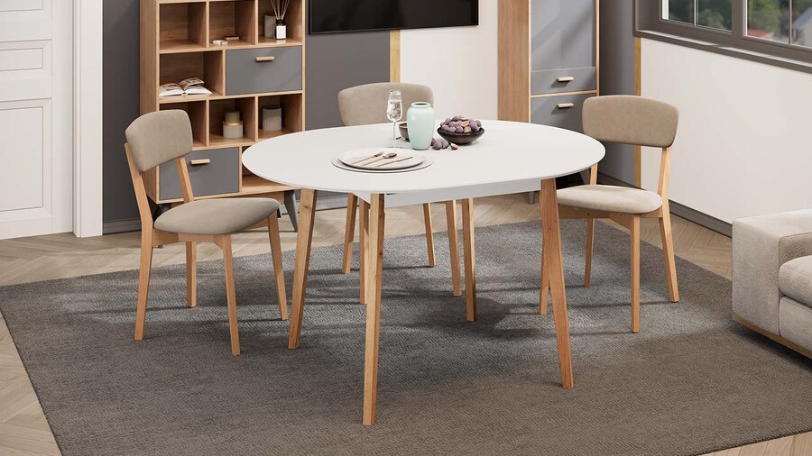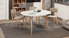 Стол «Форли» Тип 1 – это воплощение классического стиля. Эстетику и практичность в этой модели объединяют круглая раздвижная столешница и четыре элегантные опоры из массива. Вы сможете легко приспособить его под любую ситуацию – от уютного ужина вдвоем до большой семейной встречи. Благодаря универсальному стилю и сдержанному внешнему виду, такой стол органично гармонирует с различными интерьерными решениями. Материалы. Столешница из МДФ 18 мм покрыта эмалью с имитацией шпона, выполненной в стиле древесных пород. Благодаря этому, поверхность столешницы обладает характерной текстурой, что придает мебели ощущение теплоты и уюта. Опоры выполнены из массива древесных пород, обладающего прочностью и уникальным рисунком волокон, что создает эстетическую привлекательность и изысканный внешний вид изделию. Современное цветовое оформление. Модель представлена в двух актуальных цветовых исполнениях, которые позволяют приобрести стол исходя из индивидуальных предпочтений каждого потребителя, подобрав мебель на любой вкус и цвет. Функциональность. Столешница оснащена раздвижным синхронным механизмом со вставкой «бабочка», с поворотным механизмом. При необходимости ее можно с легкостью разложить, увеличив поверхность в размерах. Это выручает в моменты прихода гостей, которых хочется разместить свободно и с комфортом. Надежность конструкции. Опоры гарантируют устойчивость, надежность и долговечность стола, обеспечивая оптимальную эксплуатацию. | Декор: