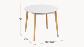 Материал столешницы и вставки: МДФ 18 мм с покрытием эмаль Материал опоры: массив древесных пород Максимальная нагрузка: 20 кг Фурнитура: синхронный механизм раздвижения, вставка «бабочка», с поворотным механизмом Габаритные размеры (ШхГхВ): 1000(1300)х1000х765 мм |