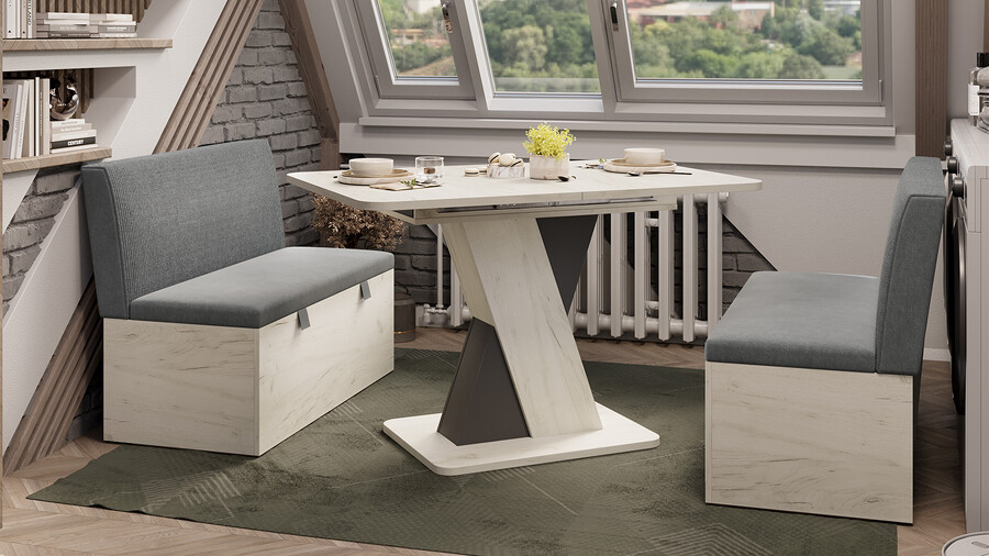 Скамья прямая «Мальта» Дуб Крафт белый, Микровелюр Linea Grande 83/Connect 83 (серый)