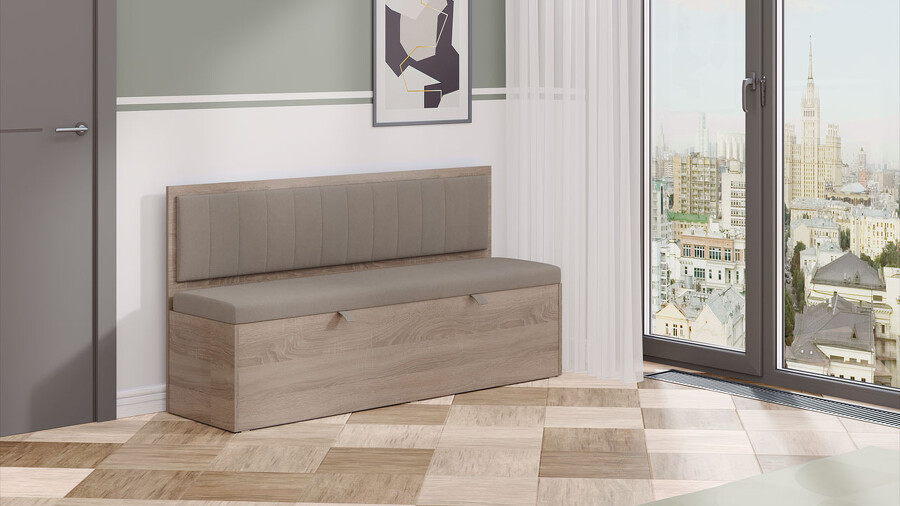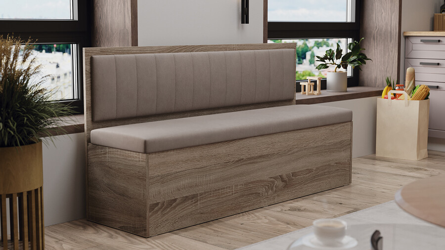 Скамья прямая «Берген» - 0009.177.000 Дуб Сонома трюфель, Велюр Мокко светлый