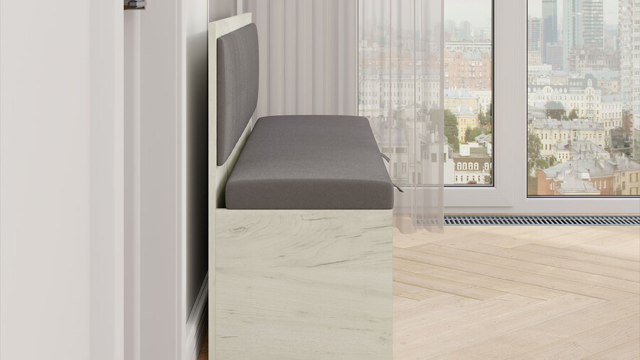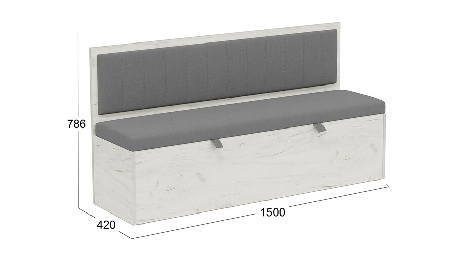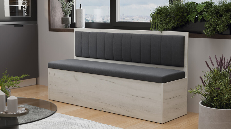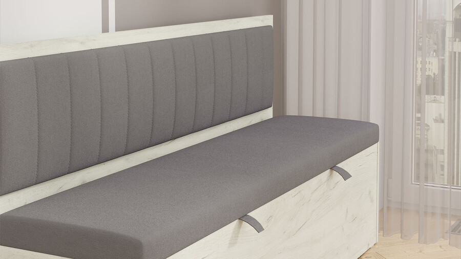 Скамья прямая «Берген» - 0009.177.000 Дуб Крафт белый, Велюр Серый