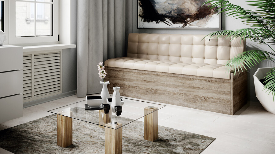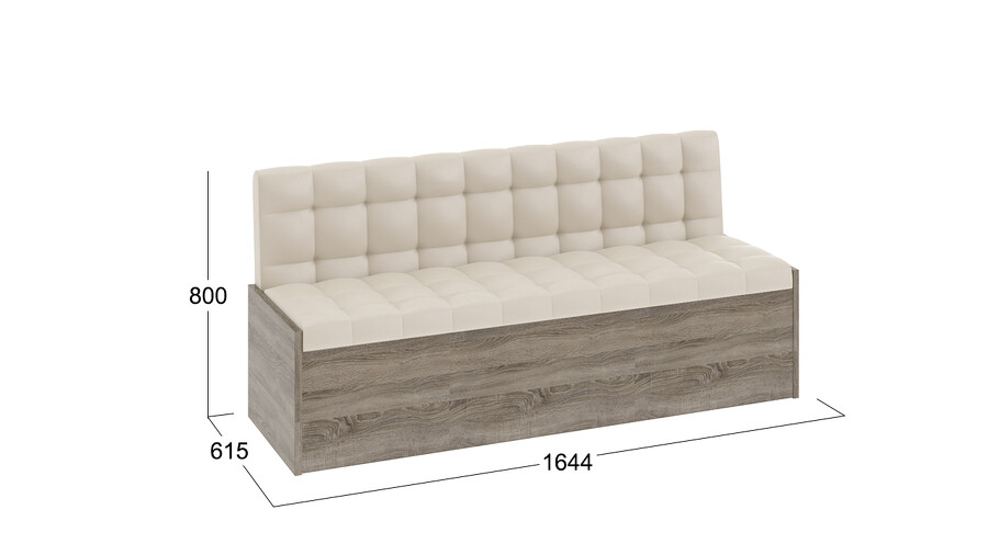 Удобная и функциональная мебель всегда ценилась в домашнем интерьере. А в обеденной зоне всегда встает вопрос размещения домочадцев и гостей дома, чтобы всем было максимально комфортно и уютно. Кухонную скамью можно отнести к одной из самых практичных категорий мебели, которая станет прекрасной альтернативой табуретам, стульям и массивным уголкам. Скамья прямая «Форест» идеально подойдет к большинству современных интерьеров. Скамья станет находкой для ценителей лаконичных форм, она будет стильным и практичным дополнением в Вашем доме, олицетворяя домашний уют. Функциональность. Нашу модель Вы сможете поставить даже в небольшое по площади помещение, ведь не всегда есть возможность установить массивный кухонный уголок. Скамья прямая «Форест» имеет компактные размеры и за счет отсутствия подлокотников получится рассадить большое количество человек. Модель имеет вместительные ящики для хранения различных принадлежностей. Вариативность исполнения. Разнообразие актуальных цветовых исполнений позволяет приобрести скамью исходя из индивидуальных предпочтений каждого потребителя, подобрав мебель на любой вкус и цвет. Обивка из кожзама – экономичная альтернатива натуральной коже. Современные технологии позволили добиться максимальной схожести с натуральной текстурой и яркости цвета. А такие свойства как эластичность, водонепроницаемость, стойкость к заломам делают материал из заменителя кожи особенно популярной. Обивка из велюра - имеет высокий уровень прочности, за счет чего практически не подвержен механическим воздействиям. Материал обладает приятными тактильными свойствами. | Декор:  Обивка: кожзам Материал каркаса: ЛДСП 16 мм Обработка торцов: кромка ПВХ 0,45 мм, на боковых элементах ПВХ 2 мм Наполнение мягких элементов: ППУ Фурнитура: подъемный механизм Максимальная нагрузка на одно посадочное место: 75 кг Габаритные размеры (ШхГхВ): 1644х615х800мм |