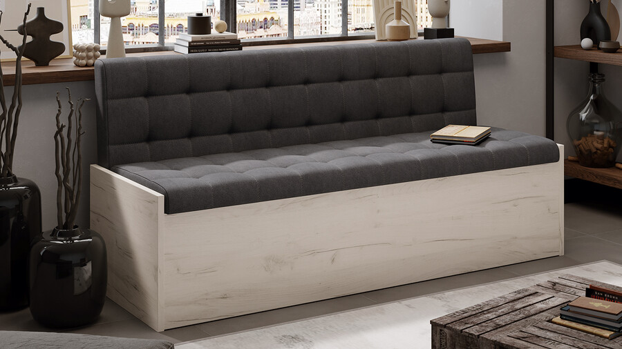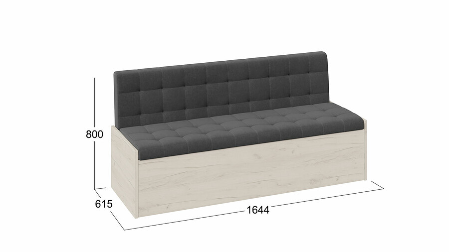 Удобная и функциональная мебель всегда ценилась в домашнем интерьере. А в обеденной зоне всегда встает вопрос размещения домочадцев и гостей дома, чтобы всем было максимально комфортно и уютно. Кухонную скамью можно отнести к одной из самых практичных категорий мебели, которая станет прекрасной альтернативой табуретам, стульям и массивным уголкам. Скамья прямая «Форест» идеально подойдет к большинству современных интерьеров. Скамья станет находкой для ценителей лаконичных форм, она будет стильным и практичным дополнением в Вашем доме, олицетворяя домашний уют. Функциональность. Нашу модель Вы сможете поставить даже в небольшое по площади помещение, ведь не всегда есть возможность установить массивный кухонный уголок. Скамья прямая «Форест» имеет компактные размеры и за счет отсутствия подлокотников получится рассадить большое количество человек. Модель имеет вместительные ящики для хранения различных принадлежностей. Вариативность исполнения. Разнообразие актуальных цветовых исполнений позволяет приобрести скамью исходя из индивидуальных предпочтений каждого потребителя, подобрав мебель на любой вкус и цвет. Обивка из кожзама – экономичная альтернатива натуральной коже. Современные технологии позволили добиться максимальной схожести с натуральной текстурой и яркости цвета. А такие свойства как эластичность, водонепроницаемость, стойкость к заломам делают материал из заменителя кожи особенно популярной. Обивка из велюра - имеет высокий уровень прочности, за счет чего практически не подвержен механическим воздействиям. Материал обладает приятными тактильными свойствами. | Декор:  Обивка: велюр Материал каркаса: ЛДСП 16 мм Обработка торцов: кромка ПВХ 0,45 мм, на боковых элементах ПВХ 2 мм Наполнение мягких элементов: ППУ Фурнитура: подъемный механизм Максимальная нагрузка на одно посадочное место: 75 кг Габаритные размеры (ШхГхВ): 1644х615х800мм |