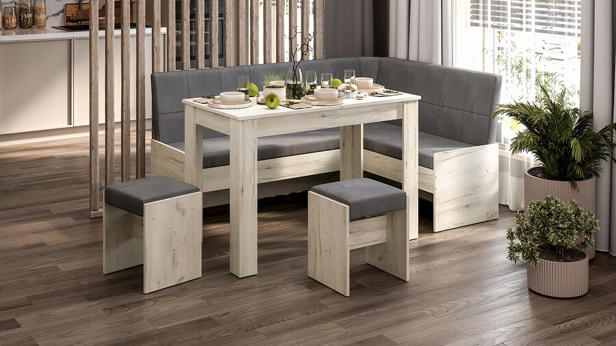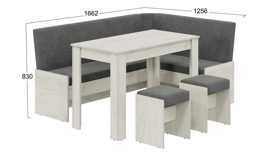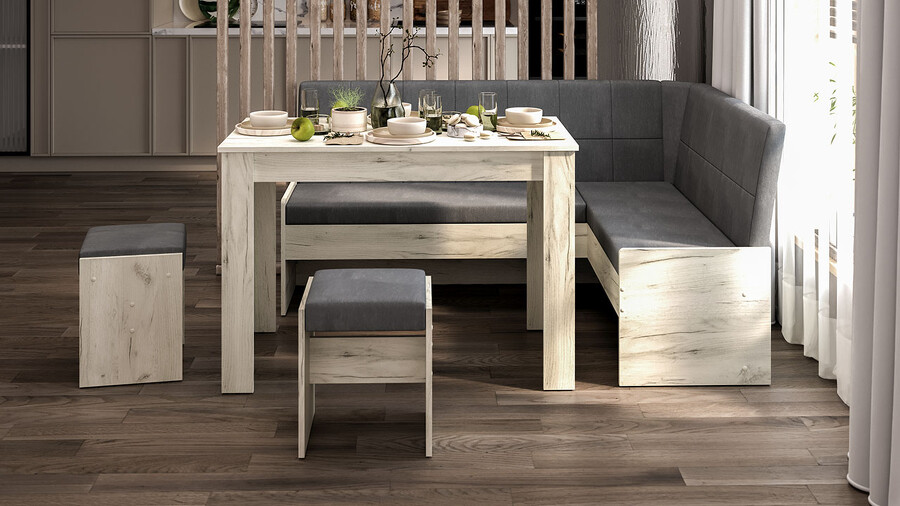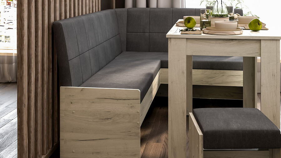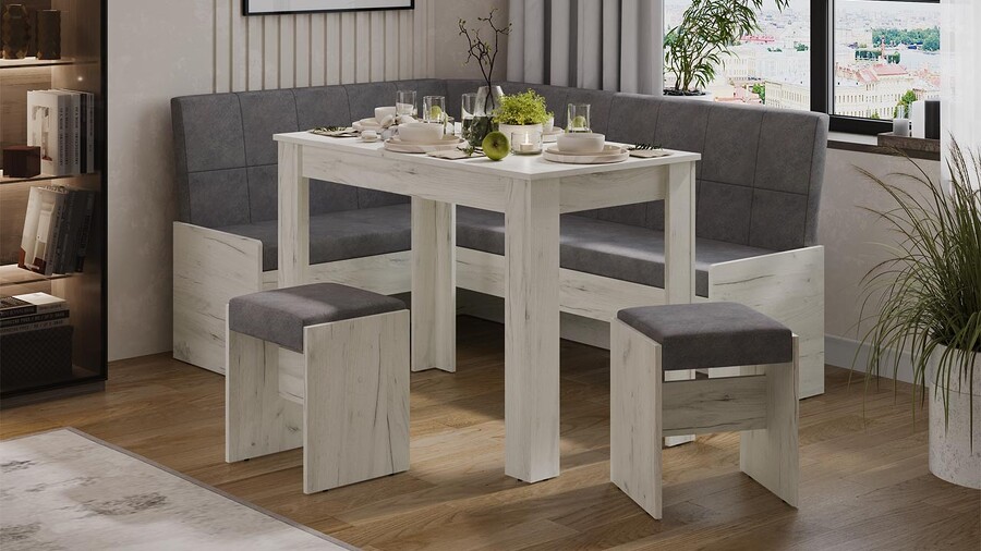 Кухонный уголок «Пекин» Дуб Крафт белый, Микровелюр Duna Steel