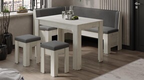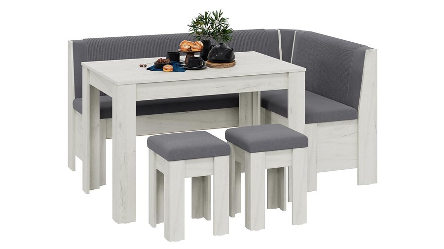 Кухонный уголок «Ганновер» - ГН №1 Дуб Крафт белый, Микровелюр Linea Grande 83/Connect 83 (серый)
