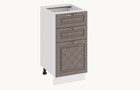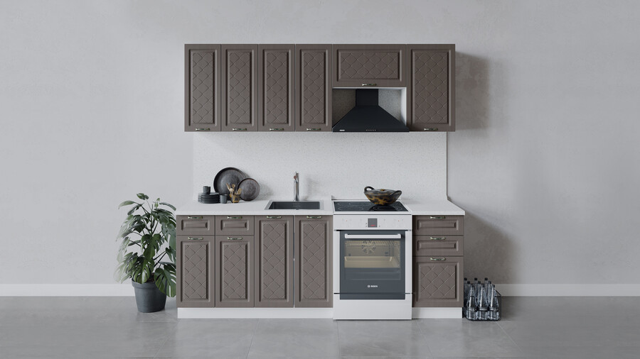 Кухня «Бьянка» — это классика с добавлением ярких акцентов, привлечет внимание истинных ценителей домашнего уюта и комфорта. Цветовые исполнения этой кухни будут прекрасно сочетаться с любыми оттенками в оформлении интерьера и идеально подойдет как для маленьких, так и для просторных помещений. Декоративное покрытие. Фасады имеют благородный внешний вид и изысканное исполнение. Они выполнены из МДФ 16 мм в матовой пленке ПВХ, с оригинальной фрезеровкой, в виде объемных ромбов. Роскошный резной декор фасадов выделяет эту элегантную кухню во всем модельном ряде. Изысканный дизайн элементов серии. Модель привлекает внимание актуальными декорами в древесных текстурах «Дуб белый», Дуб ваниль», «Дуб кофе», «Дуб серый», которые придают кухне яркую индивидуальность. В оформлении используются вставки из сатинового стекла 4 мм, с пескоструйным рисунком, повторяющим геометрию фасада. Металлическая ручка окрашена специальным методом, имитирующим брашированную старинную бронзу. Она удобна в использовании и полностью завершает композицию. Уменьшенная глубина каркасов. Каркасы в декоре «Белый» и «Дуб крафт золотой» выполнены из ЛДСП 16 мм. Новинка подойдет даже для малогабаритных кухонь, ведь глубина нижних каркасов 478 мм. Пластиковые ножки выглядят стильно и имеют регуляцию по высоте. Модульность. Коллекция содержит в себе широкий ряд элементов для основных нужд хозяек: верхние модули с глухими распашными фасадами, распашными фасадами со стеклом, нижние модули распашные, комбинированные, с ящиками под бытовую технику. Все это многообразие позволяет комплектовать гарнитур только из необходимых элементов исходя из индивидуальных потребностей. Дополнительные опции. Для завершения композиции и повышения уровня комфорта при эксплуатации дополнительно приобретаются: столешница, пластиковый цоколь, плинтус пристенный, стыковочные, угловые и торцевые планки для столешниц и стеновых панелей, посудосушители, которыми можно оснастить верхние модули, петли с доводчиками, для замены петель стандартной комплектации. | Каркас: ЛДСП 16 мм с кромкой ПВХ