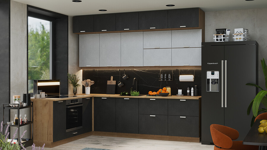 Модульная кухня «Гранита» Дуб Крафт золотой, Бетон снежный, Бетон графит