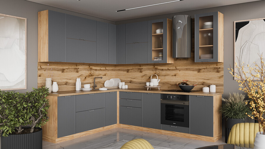 Модульная кухня «Кимберли» Дуб Крафт золотой, Титан