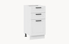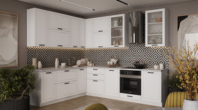 Дизайн кухни «Лорас» максимально лаконичен, тонкие рамки фасадов естественных оттенков создают спокойную геометрию в помещении, отсутствие лишних деталей умиротворяет. Этот гарнитур с уникальным тиснением «холст» на фасадах, способен создать на кухне атмосферу комфорта и уюта, а также сохранить функциональность и практичность. Цветовая гамма и тональность этой кухни сдержанная, нейтральная, будет прекрасно сочетаться с любыми оттенками в оформлении интерьера и идеально подойдет как для маленьких, так и для просторных помещений. Кухня «Лорас» способна произвести ошеломляющее впечатление даже на искушенного человека. Декоративное покрытие. Фасады выполнены из МДФ 16 мм в матовой пленке ПВХ, с уникальным тиснением «холст». Декоративная пленка призвана придать яркую индивидуальность, эксклюзивность и узнаваемость. Оригинальная и стильная фрезеровка на фасадах в виде простых и ровных линий, подчеркивает симметрию, которая характерна неоклассическому дизайну. Изысканный дизайн элементов серии. Модель привлекает внимание актуальными благородными декорами «Холст белый», «Холст брюле», «Холст вулкан», «Холст латте». Декоры новинки выделяются сдержанной красотой и элегантностью, спокойные цвета и прямые линии не перегружают взгляд и подходят людям с разными типами темперамента. В оформлении используются вставки из стекла сатин 4 мм. Пластиковые черные матовые ручки не отвлекают на себя лишнее внимание, а лишь выгодно дополняют фасады. Уменьшенная глубина каркасов. Каркасы в декоре «Белый» и «Дуб крафт золотой» выполнены из ЛДСП 16 мм. Новинка подойдет даже для малогабаритных кухонь, ведь глубина нижних каркасов 478 мм. Пластиковые ножки выглядят стильно и имеют регуляцию по высоте. Модульность. Коллекция содержит в себе широкий ряд элементов для основных нужд хозяек: верхние модули с глухими распашными фасадами, распашными фасадами со стеклом, нижние модули распашные, комбинированные, с ящиками под бытовую технику. Все это многообразие позволяет комплектовать гарнитур только из необходимых элементов исходя из индивидуальных потребностей. Дополнительные опции. Для завершения композиции и повышения уровня комфорта при эксплуатации дополнительно приобретаются: столешница, пластиковый цоколь, плинтус пристенный, стыковочные, угловые и торцевые планки для столешниц и стеновых панелей, посудосушители, которыми можно оснастить верхние модули, петли с доводчиками, для замены петель стандартной комплектации. | Каркас: ЛДСП 16 мм с кромкой ПВХ