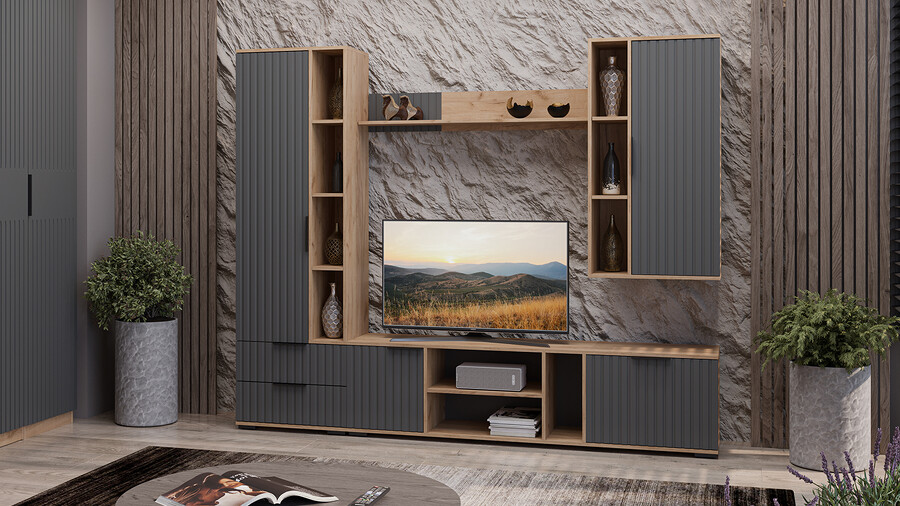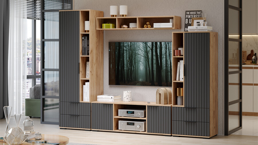 Гостиная «Хилтон» Дуб Крафт золотой, Графит матовый