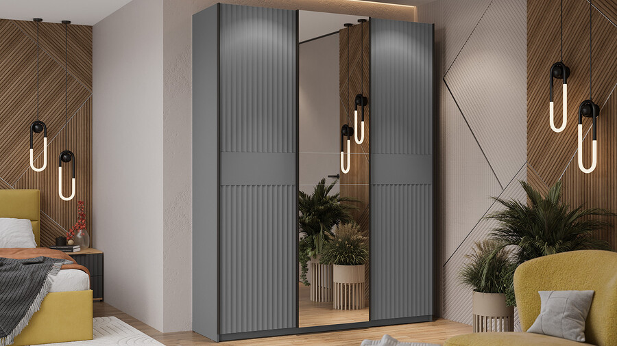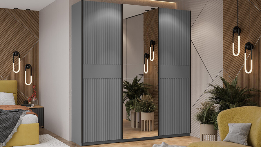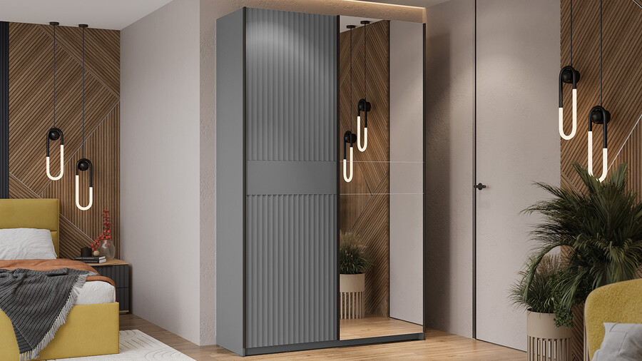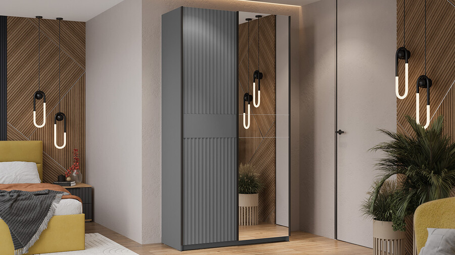 Серия шкафов-купе «Оскар Тиффани» Тип 2 Ручка черная, Серый графит, Графит матовый
