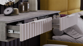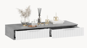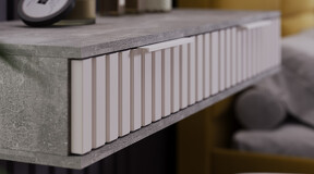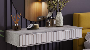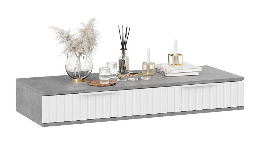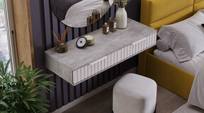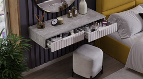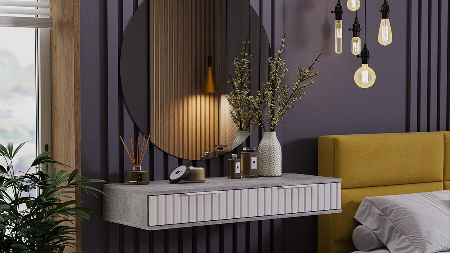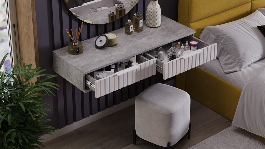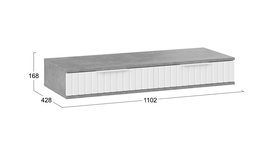 Стол туалетный «Хилтон» - лаконичная модель, которая гармонично впишется в современный дизайн комнаты. Она позволяет добавить в интерьер нотку стиля и элегантности. Дизайн. Подвесной туалетный стол «Хилтон» подходит к уже имеющимся модулям коллекции «Хилтон». Модель изготовлена из надёжных материалов: каркас выполнен из прочной ЛДСП, а фасады МДФ облицованы пленкой ПВХ и декорированы вертикальной фрезеровкой. Цветовая палитра каркаса и фасада отлично сочетается между собой, а металлические торцевые ручки, подобранные к оттенку фасадов, завершают образ модели и создают идеальный баланс стиля и качества. Функциональность. Стол туалетный «Хилтон» может стать не только функциональным элементом интерьера, но и стильным дополнением к общей концепции дизайна помещения. Благодаря своей универсальности, такую тумбу можно использовать в разных комнатах и для разных целей. Например, его можно использовать как туалетный столик, консоль в прихожую или стол письменный в детской. Наполнение и фурнитура. Помимо привлекательного внешнего вида, стол туалетный «Хилтон» дополнен вместительными выдвижными ящиками, открывание которых происходит с помощью торцевой ручки, а шариковые направляющие обеспечат плавный и бесшумный ход. Подвесной модуль не соприкасается с полом и стационарно крепится к стене при помощи мебельных навесов. Навесы размещаются, как минимум, по краям тумбы, а для большей надежности – еще и по центру. ВАЖНАЯ ИНФОРМАЦИЯ! Стол предназначен для навешивания на стену, в комплектацию входят мебельные металлические уголки для навески. Материалы стен различаются, поэтому крепежные средства не прилагаются. Используйте крепежные средства, подходящие для материала стен в вашем доме. Для выбора подходящих крепежных средств обратитесь в специализированный магазин. При монтаже навесной мебели необходимо обеспечить равномерное распределение нагрузки. | Каркас: ЛДСП 16мм Фасад: МДФ 19мм, пленка ПВХ Обработка торцов: кромка ПВХ 0,4мм Направляющие: Шариковые Ручка: Металлическая, торцевая Максимальная нагрузка на крышку стола: 20кг Максимальная нагрузка на ящик: 5кг |