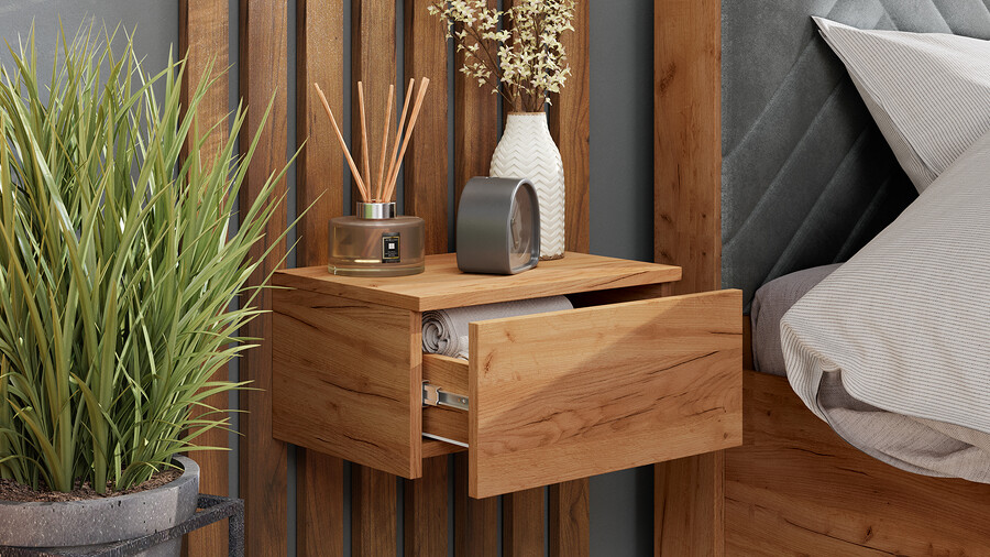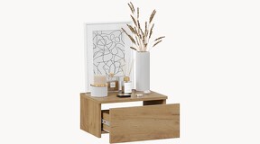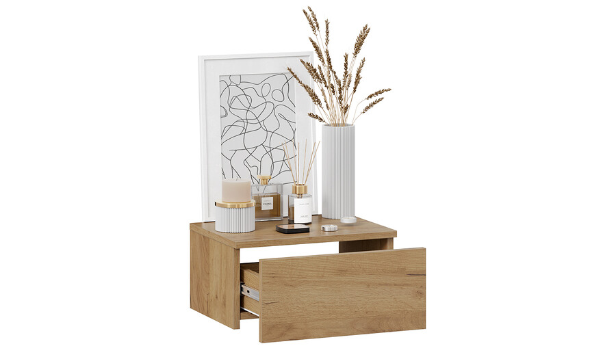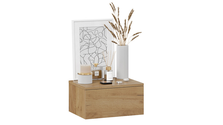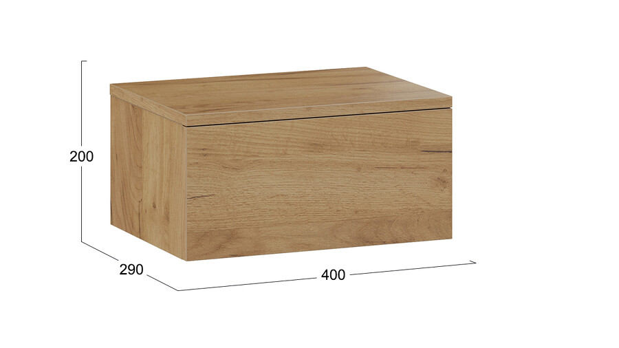 Лаконичная модель, которая гармонично впишется в современный интерьер. Она позволяет сэкономить место, а также добавить в интерьер нотку стиля и элегантности. Декор. Универсальная тумба в белом цвете идеально подойдет как для светлого помещения, так и для интерьеров в темных тонах, а древесная текстура «Дуб крафт золотой» привнесет в интерьер теплые медовые оттенки. Тумба представляет собой компактную конструкцию, которая не занимает много места и может использоваться в различных помещениях и для разных целей. Функциональность. Удобный и практичный элемент мебели, который может быть применен в различных помещениях и для разных целей. Тумба представляет собой компактную конструкцию, которая не занимает много места, но при этом обладает достаточным функционалом. Небольшие габаритные размеры позволяют использовать ее как прикроватную тумбу, мини консольный столик в прихожую или даже как небольшой журнальный столик в гостиной. ВАЖНАЯ ИНФОРМАЦИЯ! Тумба предназначена для навешивания на стену, в комплектацию входят мебельные металлические уголки для навески. Материалы стен различаются, поэтому крепежные средства не прилагаются. Используйте крепежные средства, подходящие для материала стен в вашем доме. Для выбора подходящих крепежных средств обратитесь в специализированный магазин. При монтаже навесной мебели необходимо обеспечить равномерное распределение нагрузки. | Каркас/Фасад: ЛДСП 16мм Кромка: ПВХ 0,4мм Направляющие: Шариковые Открывание: с помощью захвата снизу |
