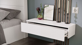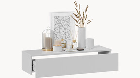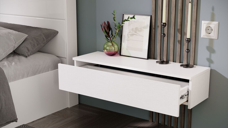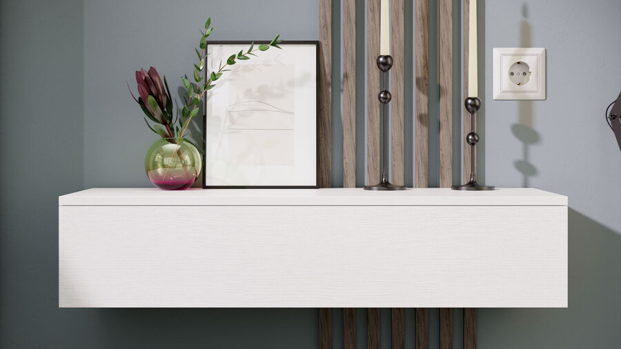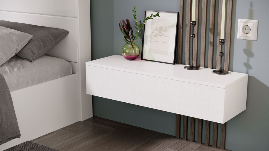 Лаконичная модель, которая гармонично впишется в современный интерьер. Она позволяет сэкономить место, а также добавить в интерьер нотку стиля и элегантности. Декор. Универсальная тумба в белом цвете идеально подойдет как для светлого помещения, так и для интерьеров в темных тонах, а древесная текстура «Дуб крафт золотой» привнесет в интерьер теплые медовые оттенки. Тумба представляет собой компактную конструкцию, которая не занимает много места и может использоваться в различных помещениях и для разных целей. Функциональность. Тип 2 - это более крупные размеры, которые позволяют использовать ее как туалетный столик, консоль в прихожую или подвесную тумбу ТВ. Такая тумба может стать не только функциональным элементом интерьера, но и стильным дополнением к общей концепции дизайна помещения. Благодаря своей универсальности, такую тумбу можно использовать в разных комнатах и для разных целей. Например, она может стать отличным дополнением к действующим коллекциям мебели, таким как «Агата» или «Хилтон». ВАЖНАЯ ИНФОРМАЦИЯ! Тумба предназначена для навешивания на стену, в комплектацию входят мебельные металлические уголки для навески. Материалы стен различаются, поэтому крепежные средства не прилагаются. Используйте крепежные средства, подходящие для материала стен в вашем доме. Для выбора подходящих крепежных средств обратитесь в специализированный магазин. При монтаже навесной мебели необходимо обеспечить равномерное распределение нагрузки. | Каркас/Фасад: ЛДСП 16мм Кромка: ПВХ 0,4мм Направляющие: Шариковые Открывание: с помощью захвата снизу |