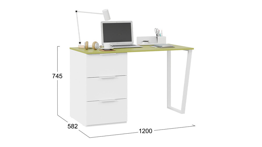 Стол письменный с тумбой универсальной «Порто» - СМ-393.15.011 Белый, Зеленый