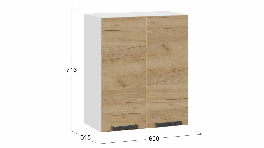 Шкаф навесной c двумя дверями «Детройт» - 1В6 Белый, Дуб Крафт золотой