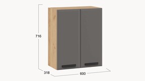Шкаф навесной c двумя дверями «Тиана» - 1В6 Дуб Крафт золотой, Асфальт супермат