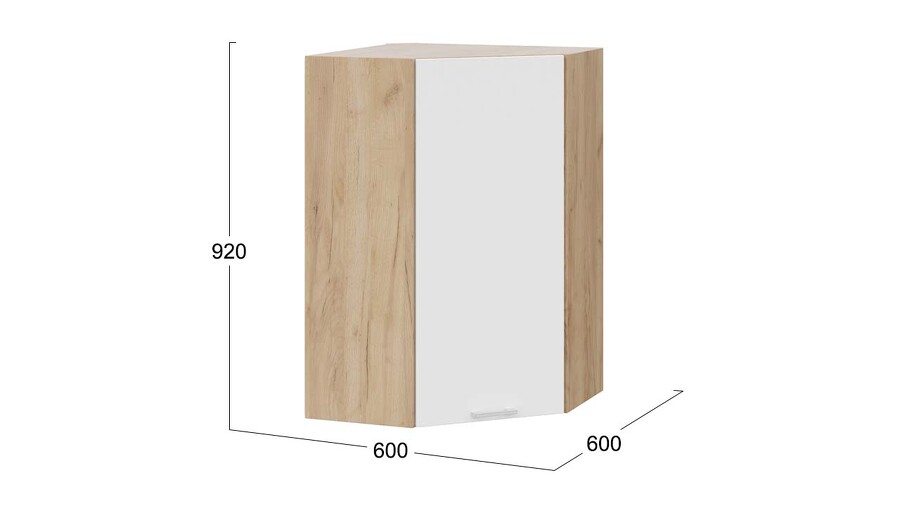 Шкаф навесной угловой «Габриэлла» - 1ВВ6У Дуб Крафт золотой, Сноу