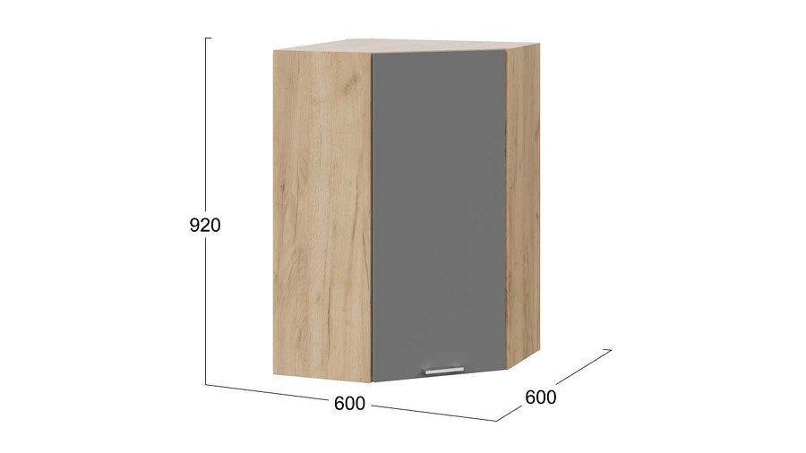 Шкаф навесной угловой «Габриэлла» - 1ВВ6У Дуб Крафт золотой, Титан