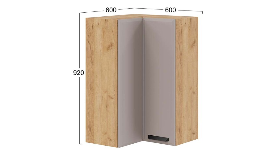 Шкаф навесной угловой прямой «Тиана» - 1ВВ6УП Дуб Крафт золотой, Мокко супермат