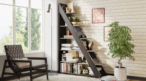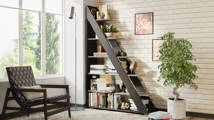 Функциональность. Стеллаж тип 14 способен полностью заменить собой вместительный книжный шкаф или секцию модульной мебельной стенки, обеспечив при этом дополнительное удобство и легкий доступ к различным предметам, расположенным на его полках. | Максимальная нагрузка на полку: 5кг Крепление к стене: планка металлическая |