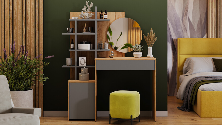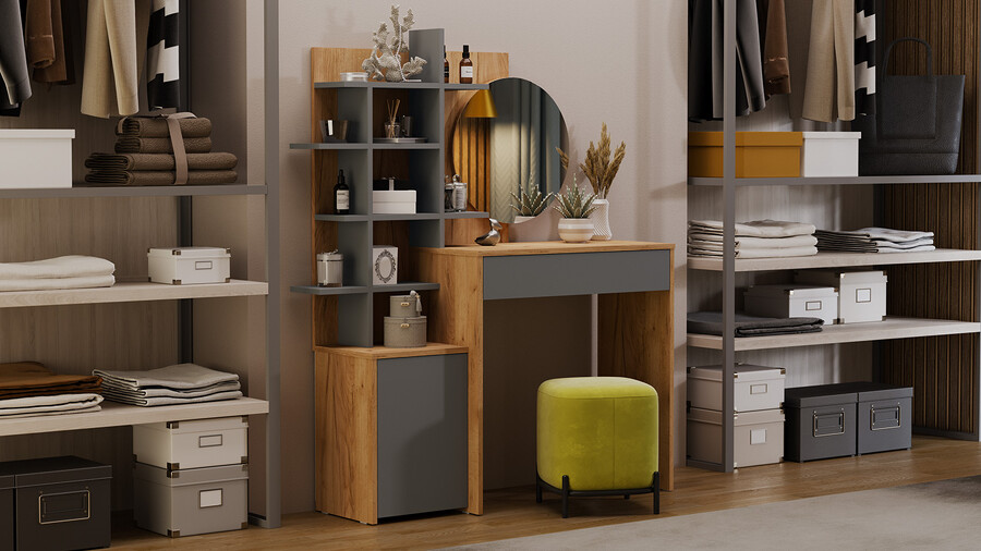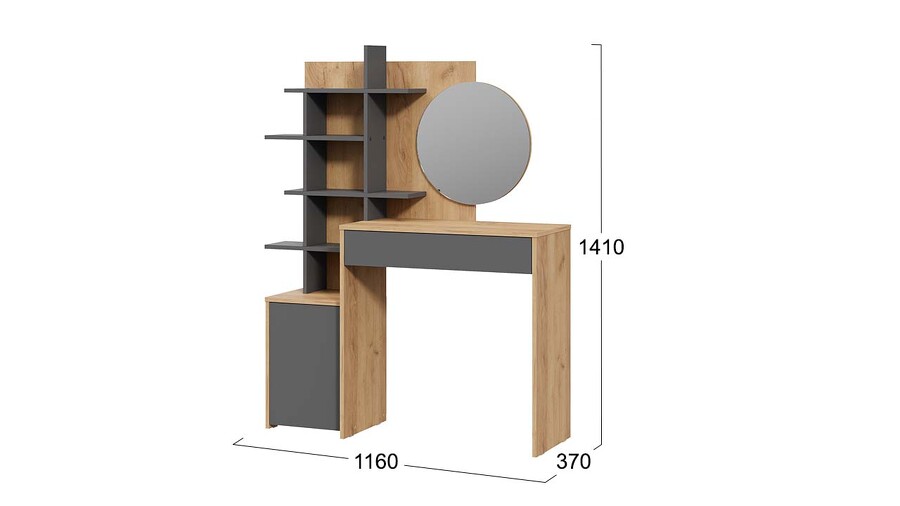 Стол туалетный «Голден» Дуб Крафт золотой, Графит Серый